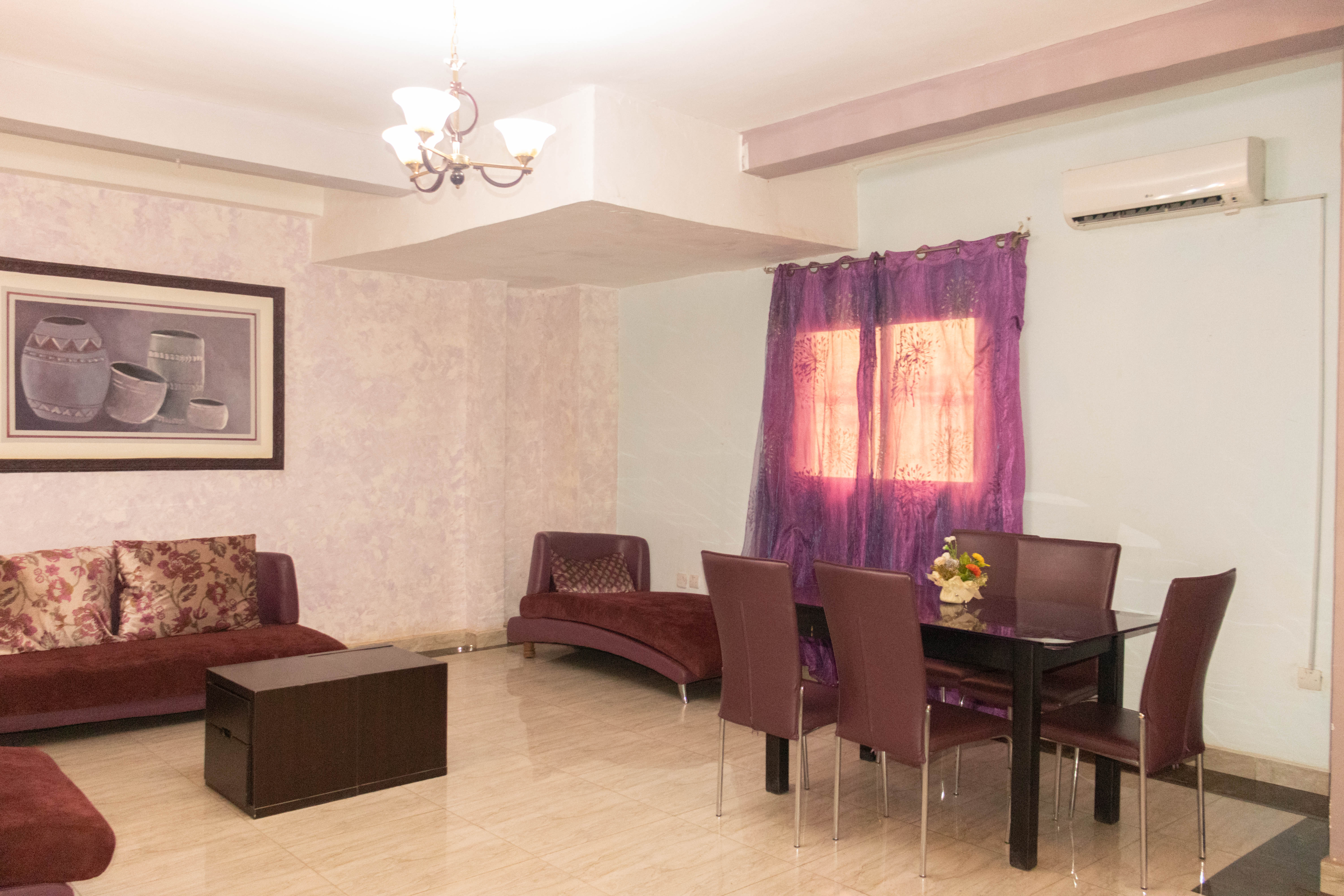 2 chambres, salon luxueux, salles de bain avec baignoire. Clim, Wi‑Fi, TV.